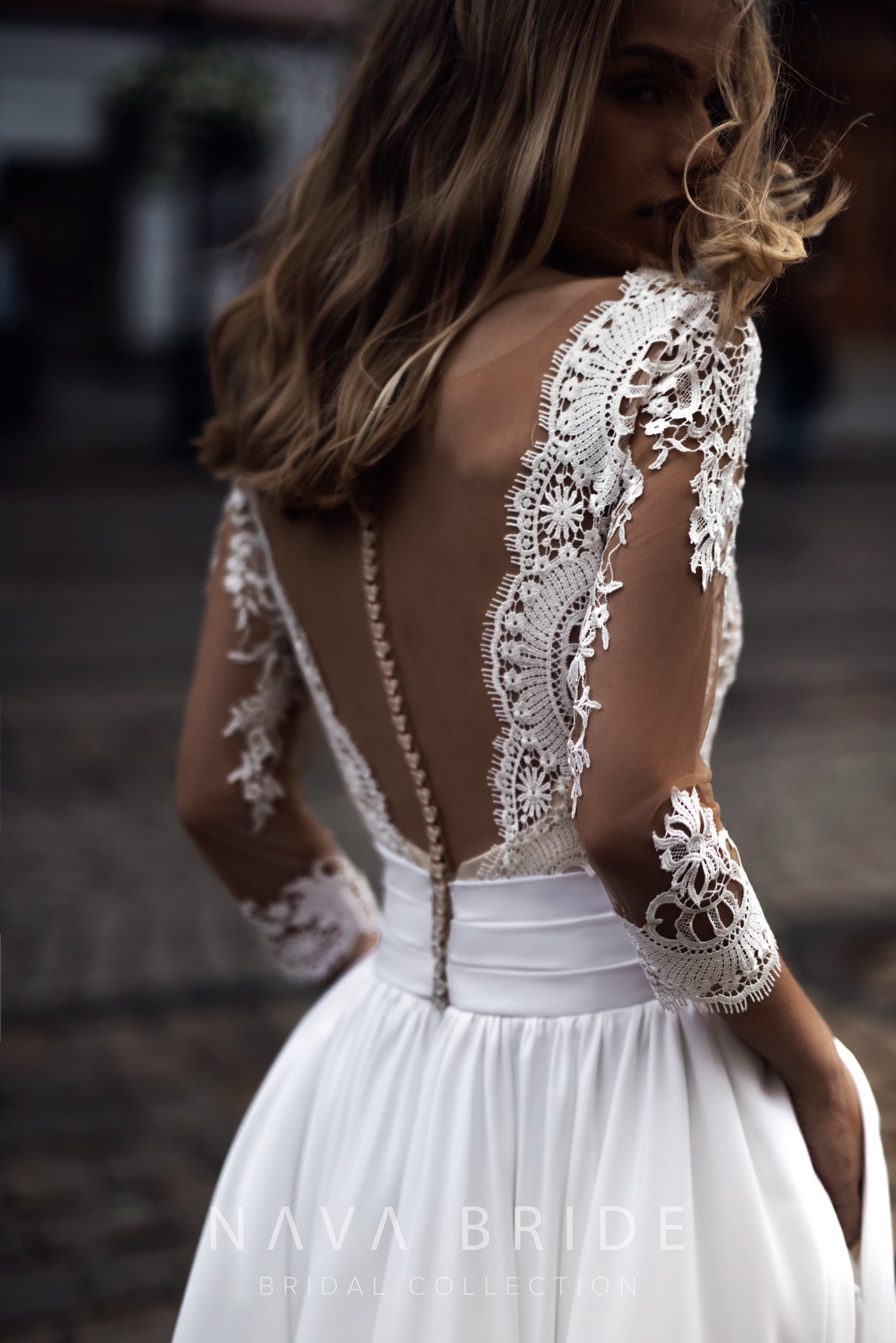 Nádherné vzdušné boho šaty se zajímavě řešenými zády a krajkovými rukávy.