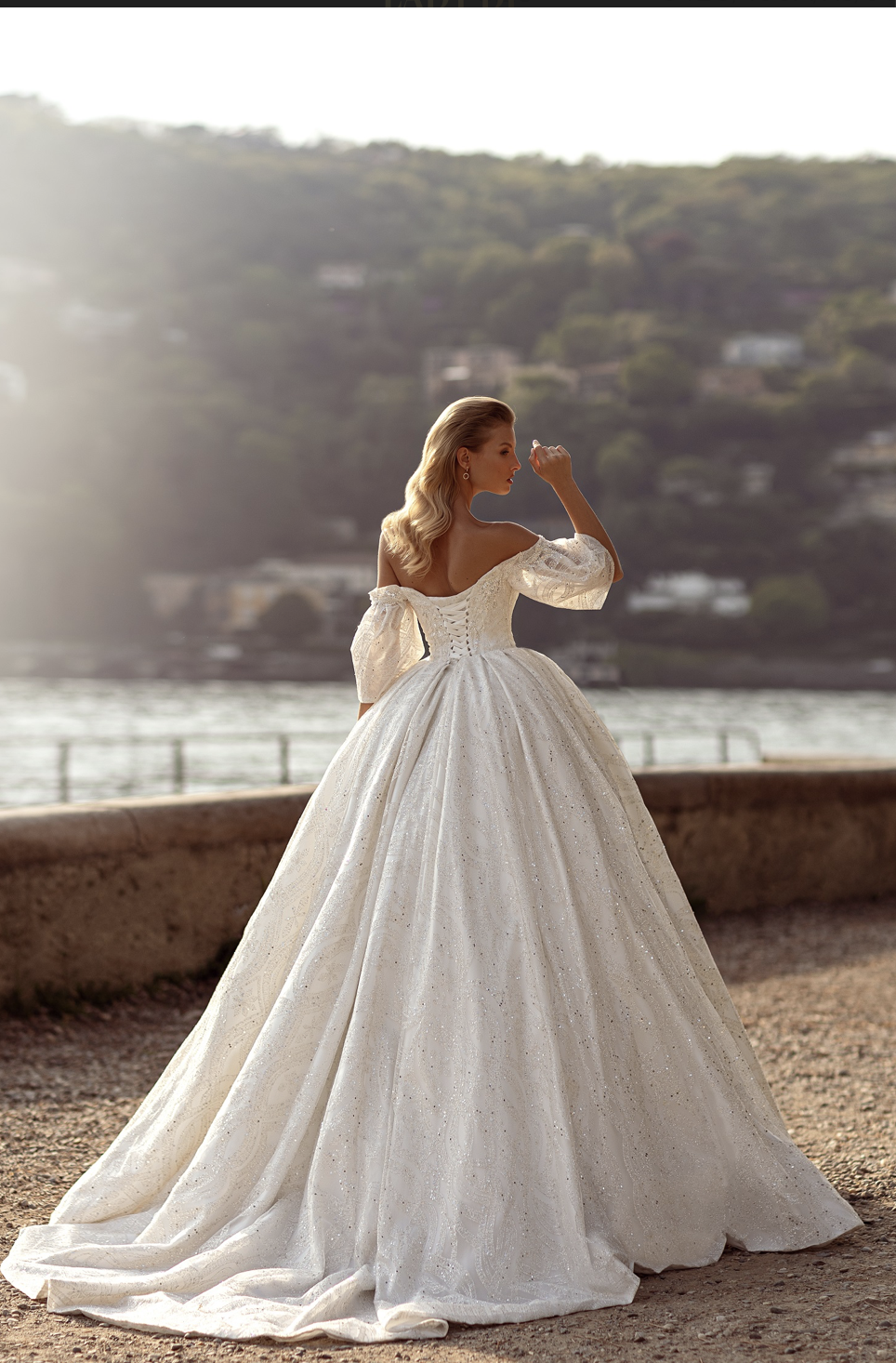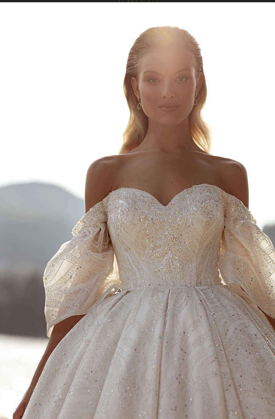 Nádherné svatební šaty, které najdete ve svatebním salonu La KlauMa v Mladé Boleslavi.