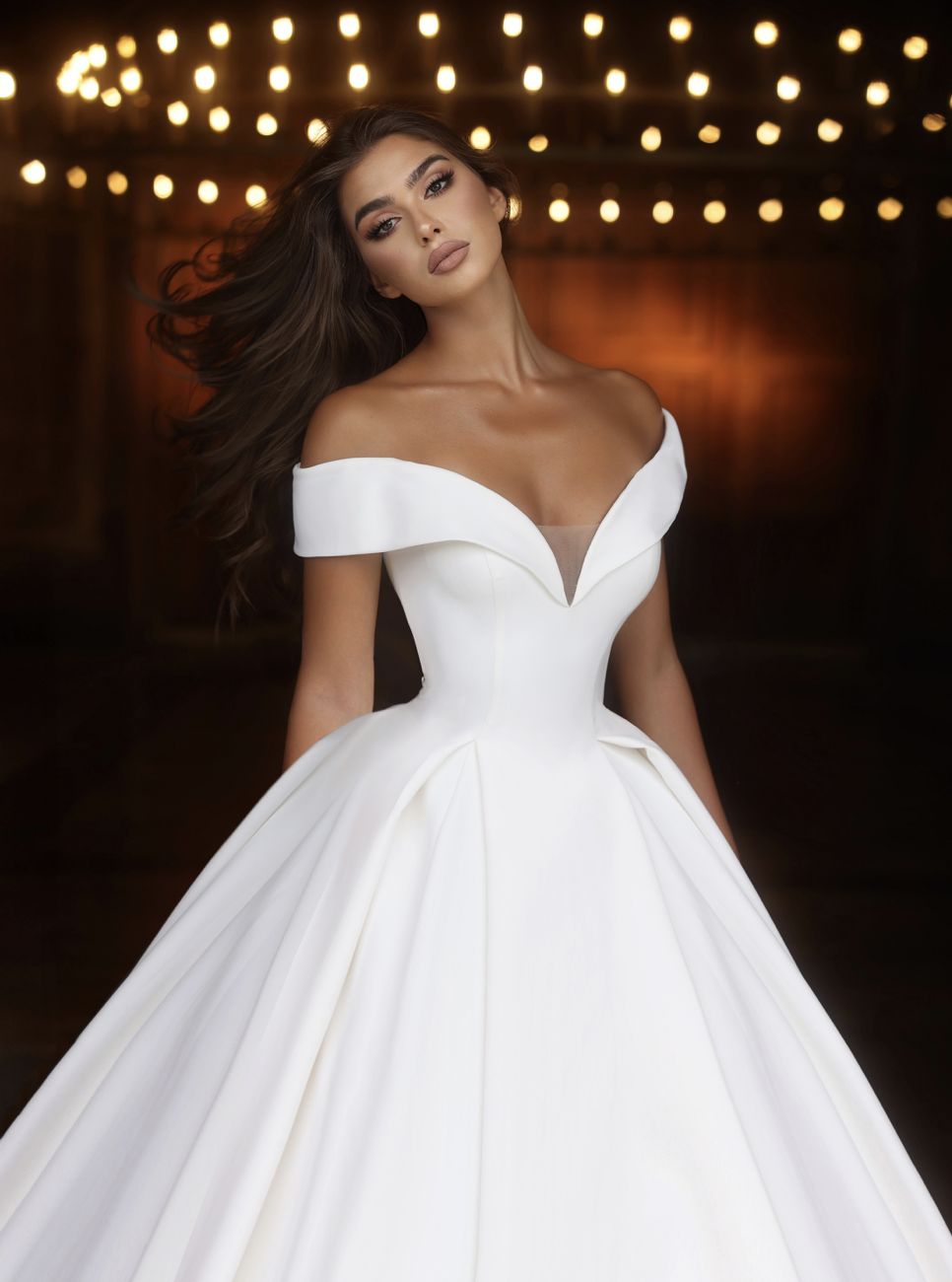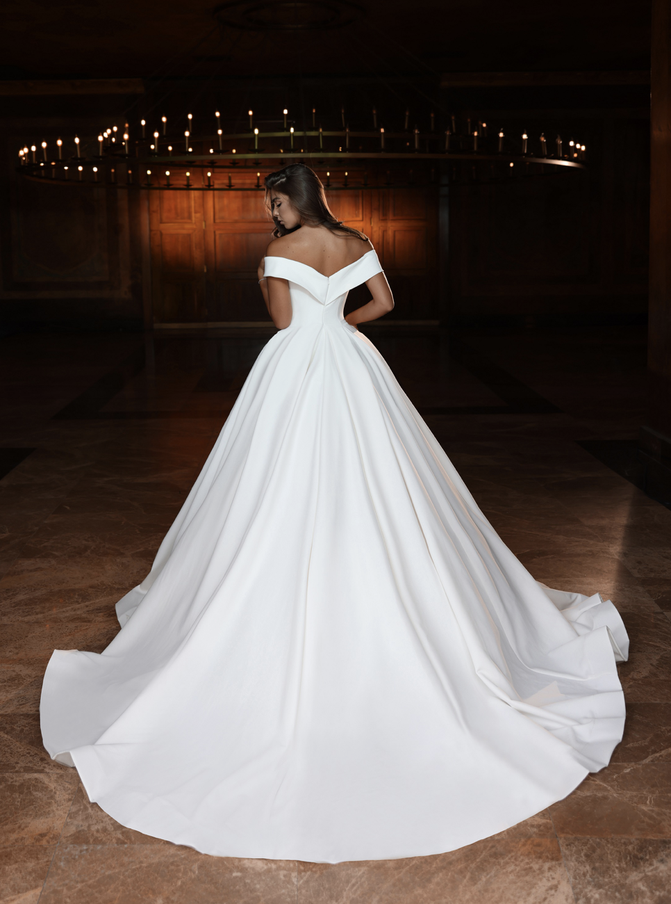 Představujeme svatební šaty 1108, dokonalé spojení nadčasové elegance a moderního designu. Toto mistrovské dílo je speciálně vytvořeno pro nevěsty, které si pro svůj výjimečný den představují klasický, ale současný vzhled.