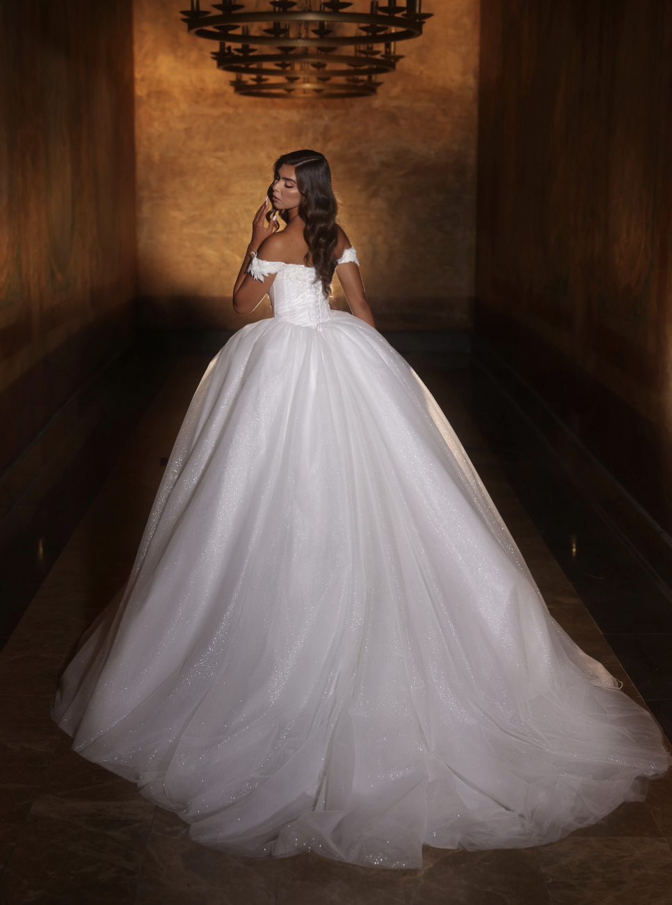 Svatební šaty ze svatebního salonu La KlauMa 1112 snoubí tradiční eleganci s moderními designovými prvky. Tyto šaty jsou poctou odbornému řemeslu za vaše cenné okamžiky.