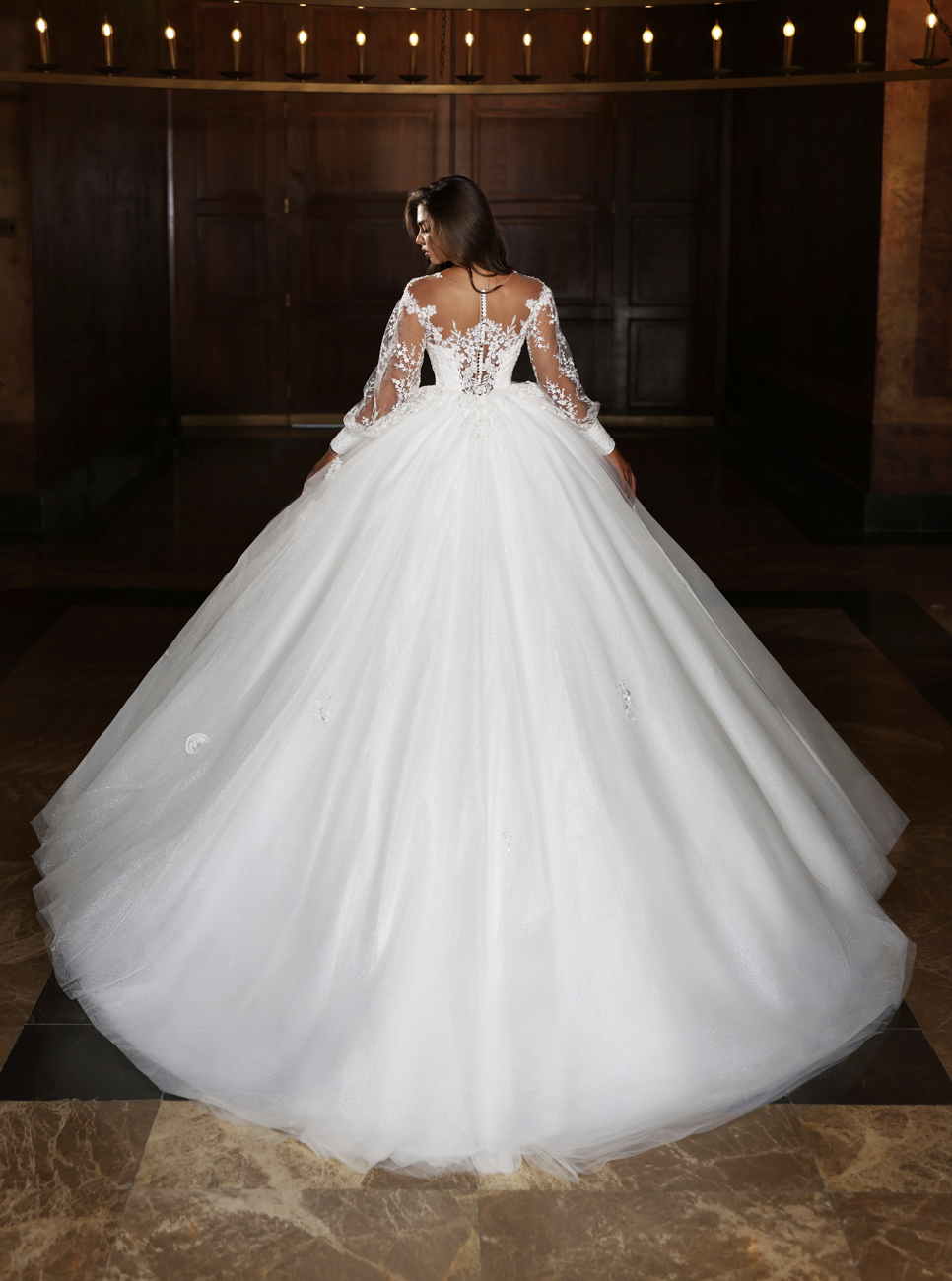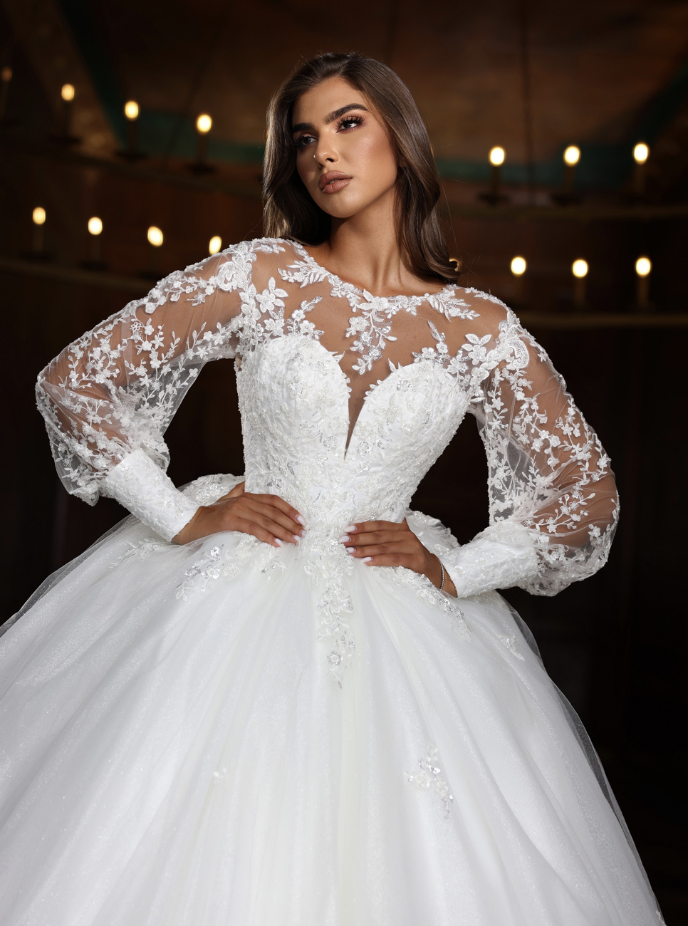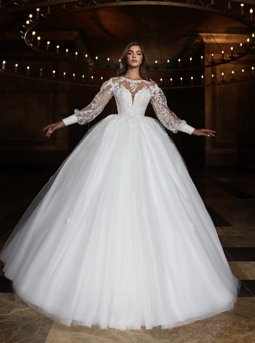 Představujeme svatební šaty 1121 – ztělesnění elegance a nadčasové krásy navržené pro moderní nevěstu.