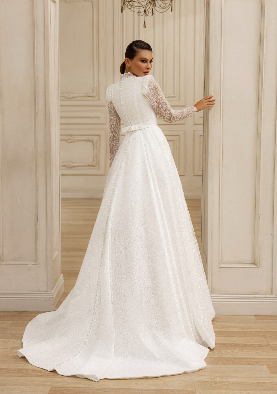 Pak je tu krajka. Rukávy a překrytí dodávají měkké, romantické vibrace. Jsou to pravé pro ty vzácné detailní záběry vašeho velkého dne.