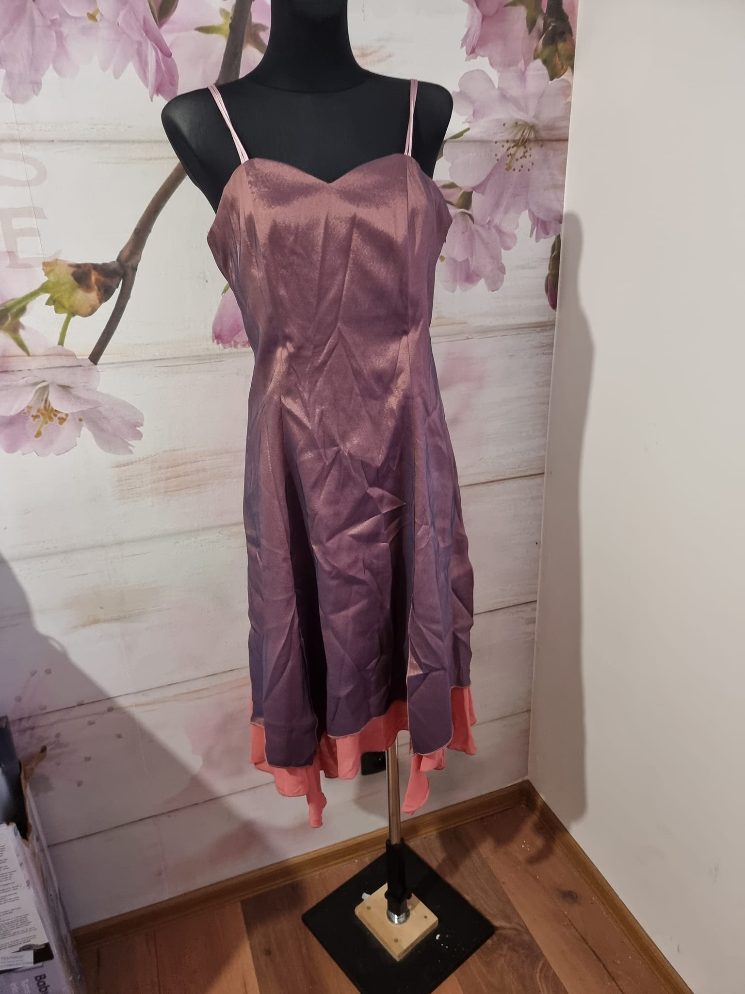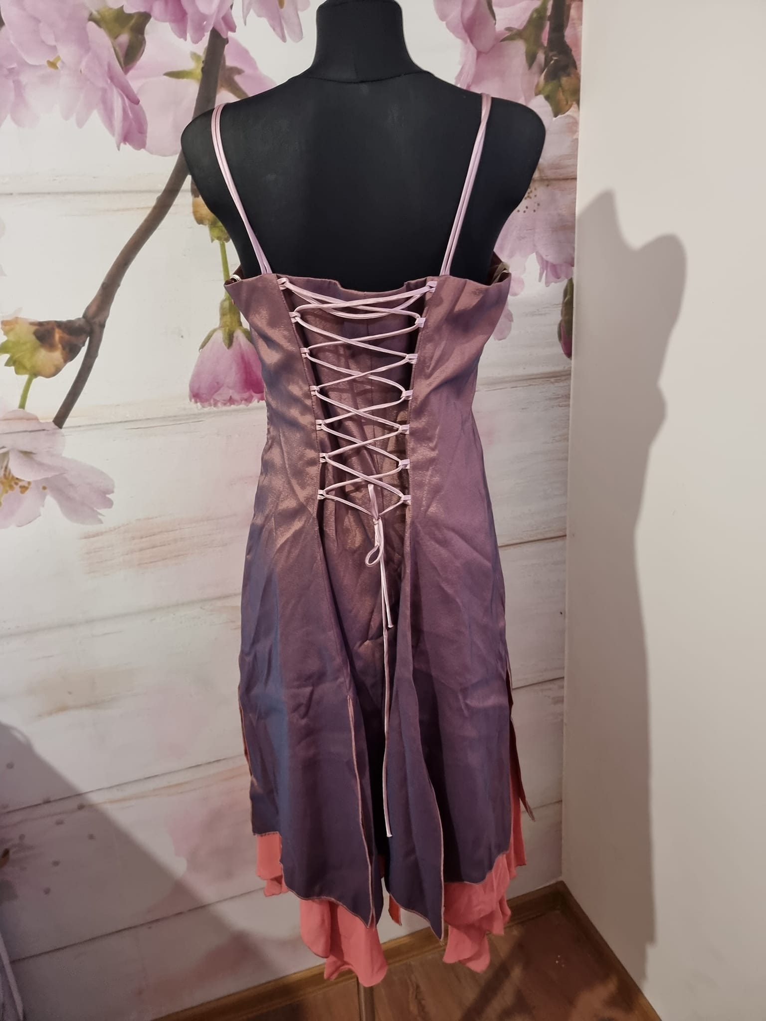 Fialovo růžové šaty s upravitelnou velikostí.